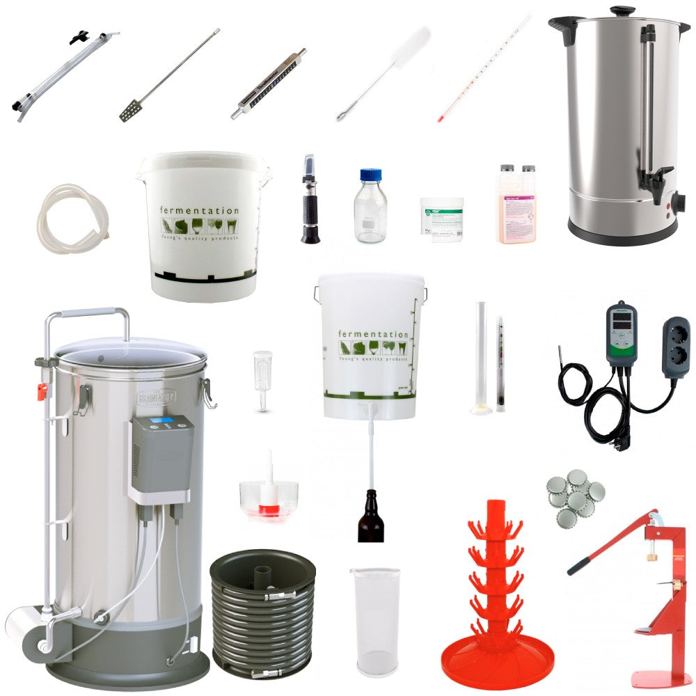 - Komplette utstyrspakker komplett med utstyr for deg som vil brygge øl helt fra bunnen av, med full kontroll over smak og stil. Vi kan anbefale vårt bestselgende startsett Grainfather Brewery Kit.