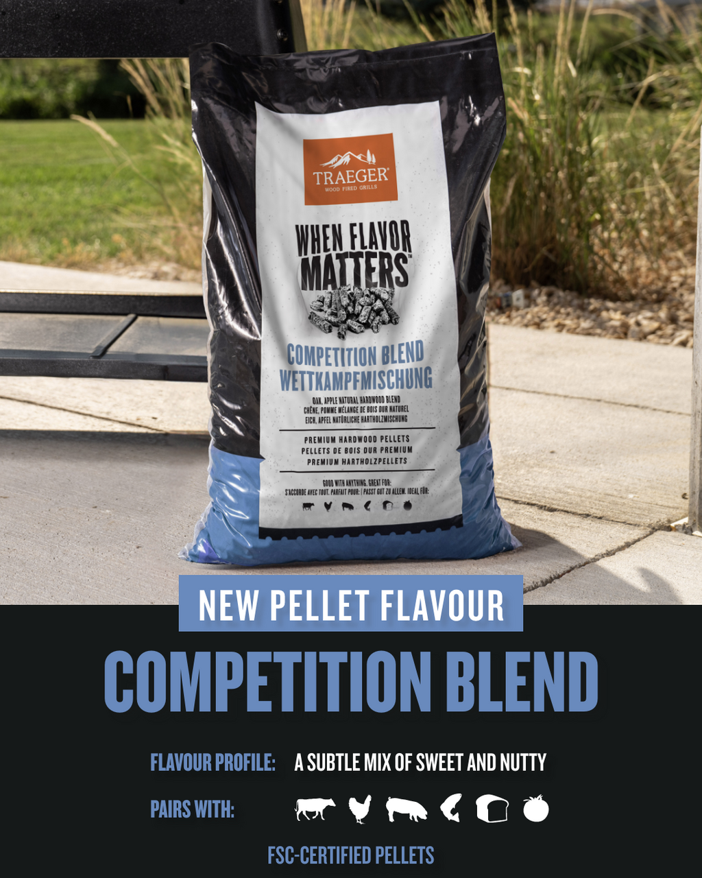 Traeger Competition Blend Pellets gir en subtil miks av søt og nøtteaktig røyksmak, velegnet for alt du legger på grillen. Traegers pellets består av 100% trevirke og gir en uovertruffen vedfyrt røykaroma. Kvaliteten er oppnådd med systematisk arbeid over mange år, slik at du trygt kan vite hvilken røyksmak pelletsene gir maten. *Forpakningen kan variere i utseende.