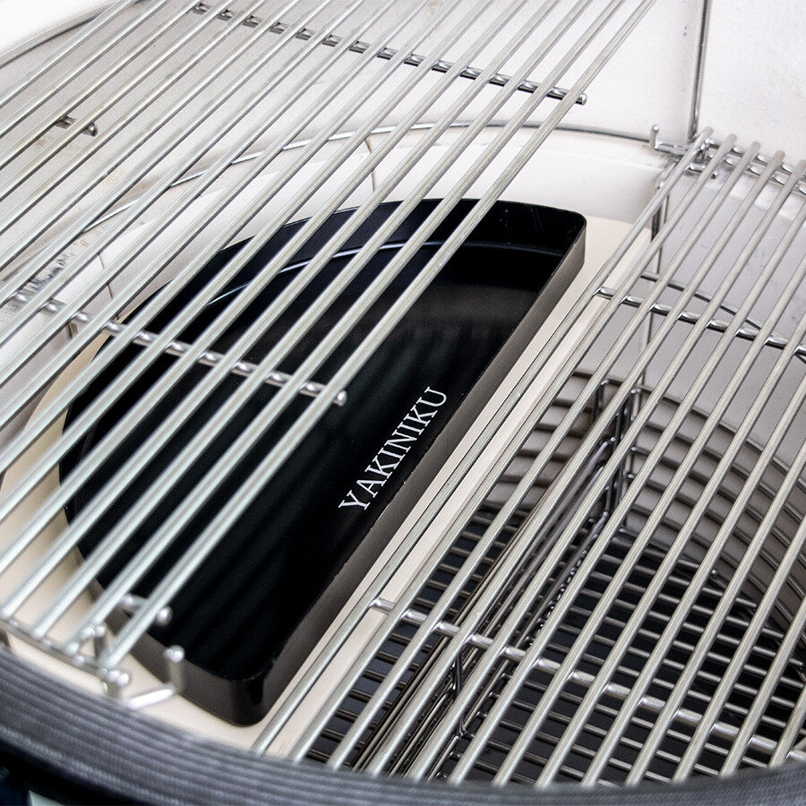 YAKINIKU halvmåne dryppfat er et allsidig tilbehør som samler opp fett og væske under grillingen. Dette bidrar til mindre røykutvikling og mer stabil temperatur i kamadoen.