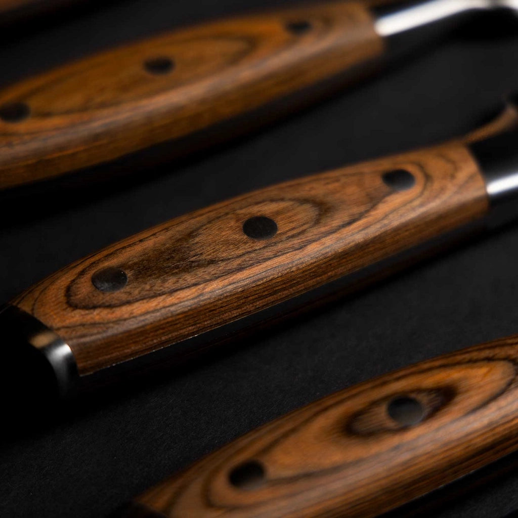 - Pakkawood-håndtak med tre nagler for klassisk eleganse