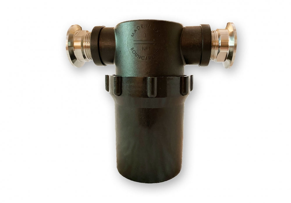 Bouncer Pro D er et inline filter for designet for ved destillering av brennevin, og filtrerer ut ingredienser, karbonpartikler, tjære fra eikefat m.m. ved overføring og tapping. Tåler høye temperaturer og kan også brukes foran plate- / motstrømskjølere.