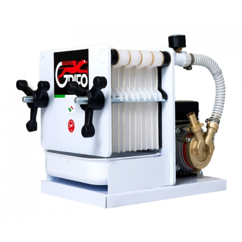 Et robust og effektivt platefilter med pumpe fra Grifo, Italia. Designet og bygget med materialer og struktur av høy kvalitet. Praktisk og enkel å bruke.