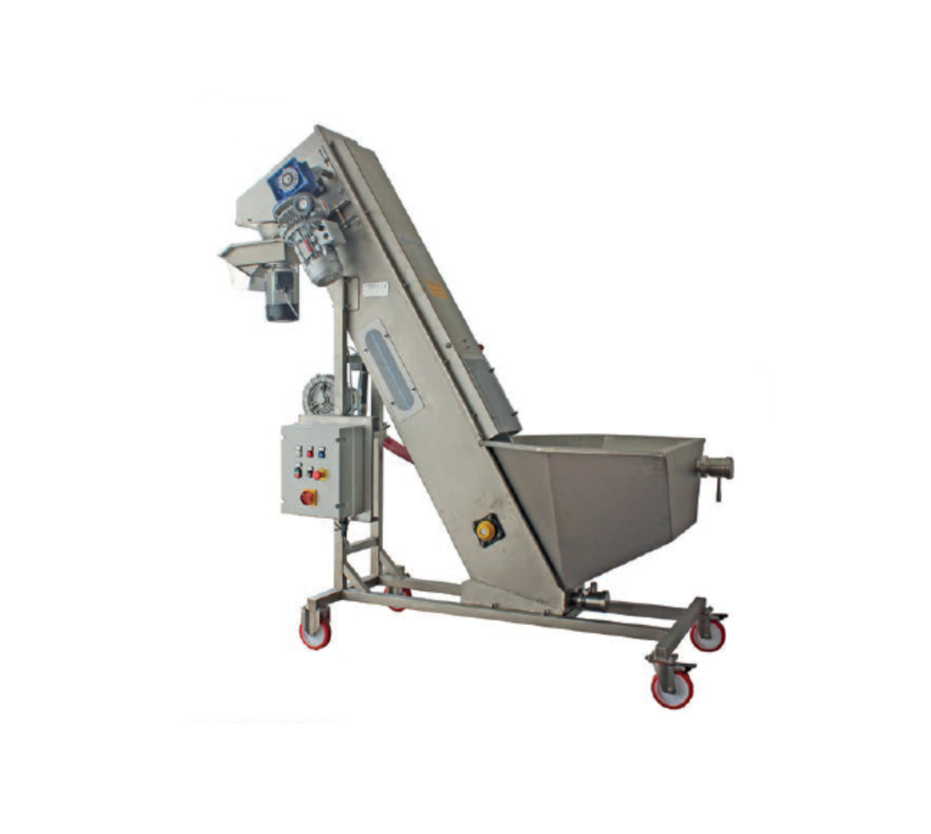 Maskinen er bygget i AISI 304 rustfritt stål, noe som sikrer høy slitestyrke, enkel rengjøring og lang levetid. Den leveres med justerbar hastighet, avtakbare deler og sikkerhetsfunksjoner som nødstoppsystem.