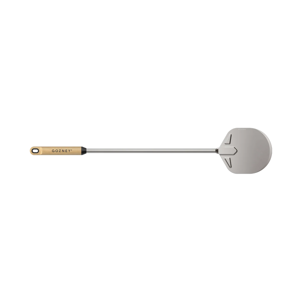 Gozney Utility Turning Peel er et solid arbeidsverktøy for pizzabakeren – laget for å tåle høy varme og hyppig bruk. Det enkeltstøpte bladet i rustfritt stål er både sterkt og bredt nok til å løfte og rotere pizzaen med presisjon mens den stekes, uten å miste formen.