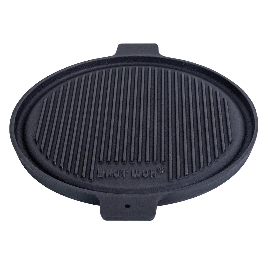 Støpejernets overlegne varmefordeling sørger for jevn temperatur over hele overflaten, og den slitesterke konstruksjonen gjør pannen ideell for både grilling, steking og searing ved høy varme. HOT WOK Grillpannen er et perfekt tilbehør til alle HOT WOK gassbrennere, men fungerer også utmerket på andre varmekilder.