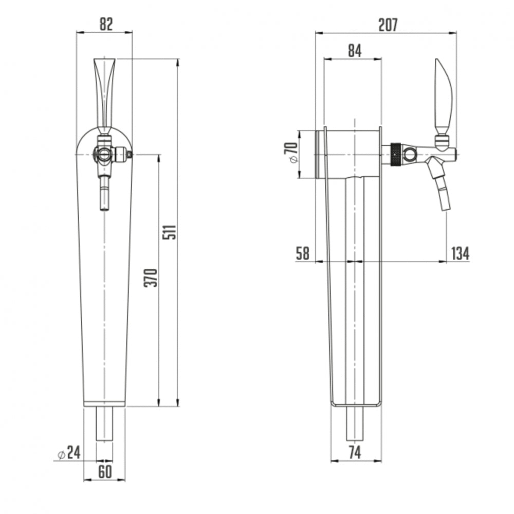 Tappetårnet LINDR NAKED ONE er et unikt tappetårn med én kran, som hovedsakelig drar nytte av et enkelt, rent design. Den desginet i ett stykke rustfritt stål uten sveiser, og er spesielt egneta for moderne områder på barer eller restauranter og der det ikke er mye plass. For å understreke designet, dugger midtstangen på overflaten takket være resirkulasjonen, og skaper et unikt utseende av et virkelig avkjølt øl.