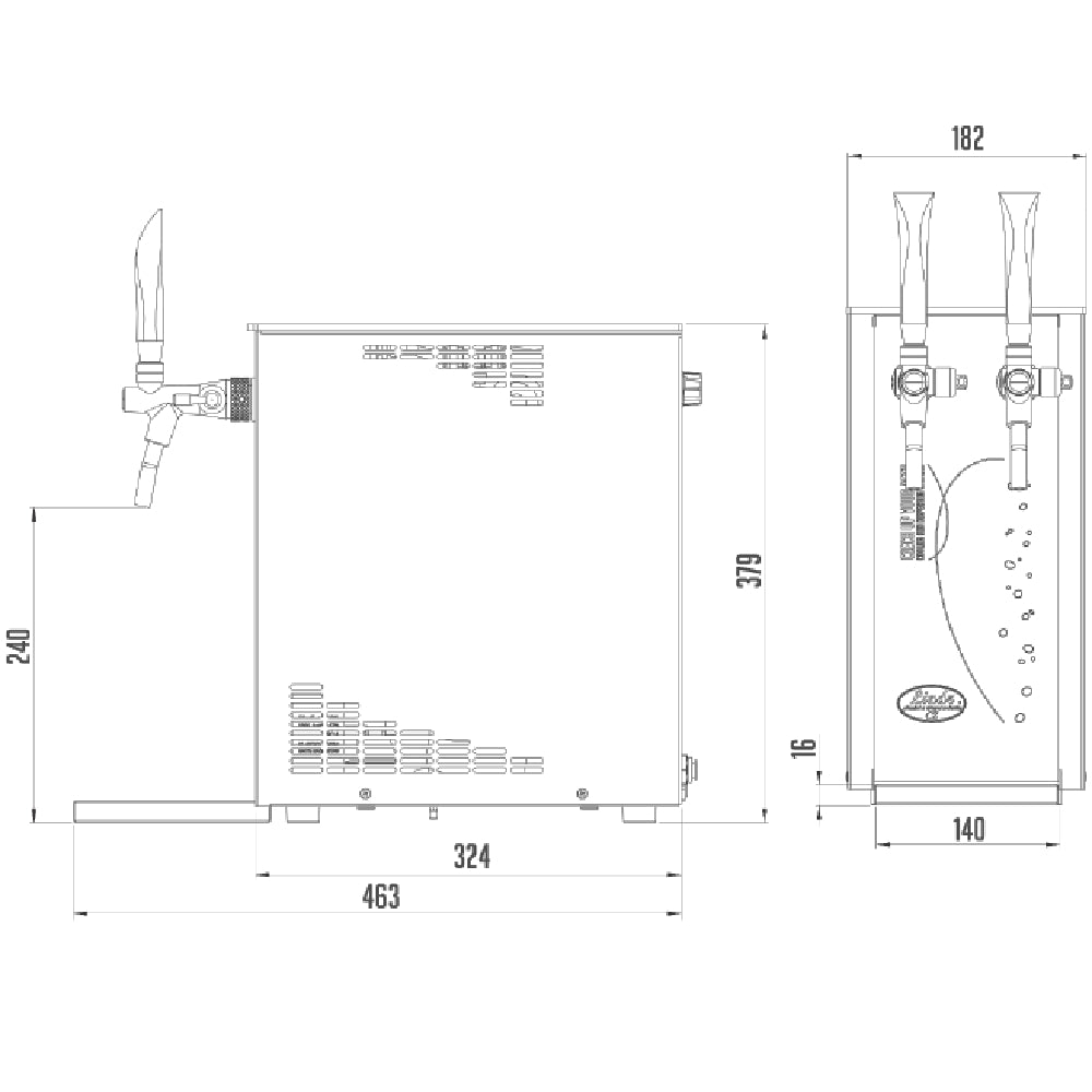 PYGMY 25/K Exclusive leveres med termostat som muliggjør kontinuerlig og presis regulering av drikketemperaturen, kran(er), krannøkkel, dryppbrett og push-fit hurtigkobling for enkel tilkobling.