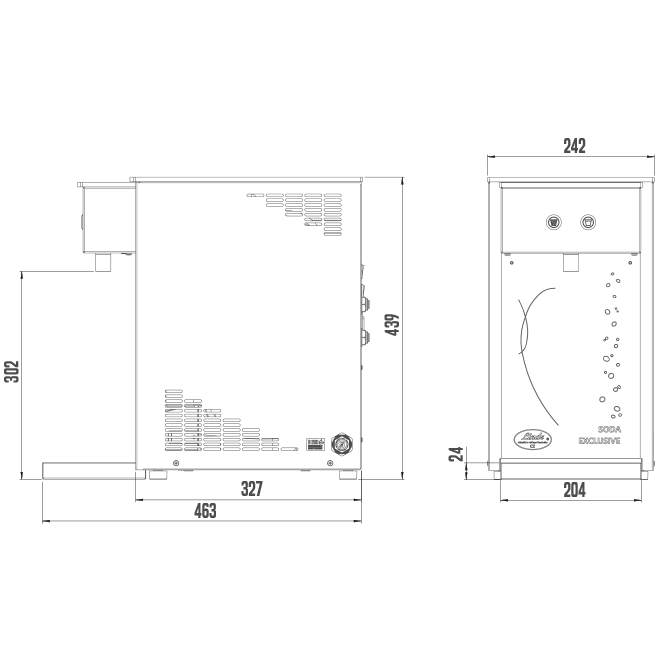 - Høy kapasitet – opptil 25 liter kullsyrevann per time