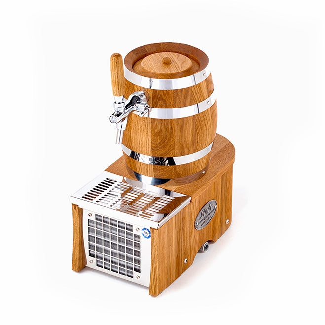 Den lille, men elegante SOUDEK 20 kommer i utførelse av solid eik, og er konstruert for profesjonell kjøling av 15-20 liter per time, tilsvarende opptil 40 halvlitere. Den leveres uten luftkompressor, og du trenger derfor CO2 for å transportere ølet fra fatet.