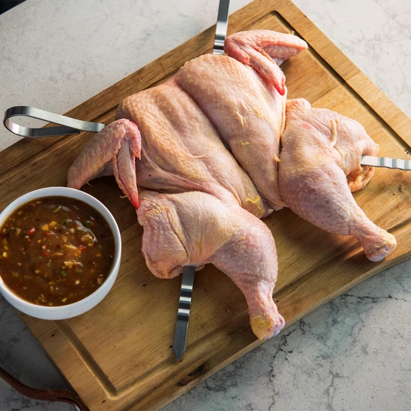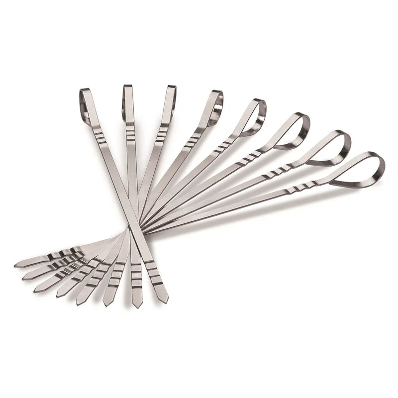 Den flate utformingen sørger for at kjøtt, grønnsaker og fisk ikke roterer når du vender spydene og alt blir liggende riktig og grilles jevnt på alle sider. De praktiske håndtakene gjør det enkelt å løfte, snu og flytte spydene både på grillen og over på serveringsfat.