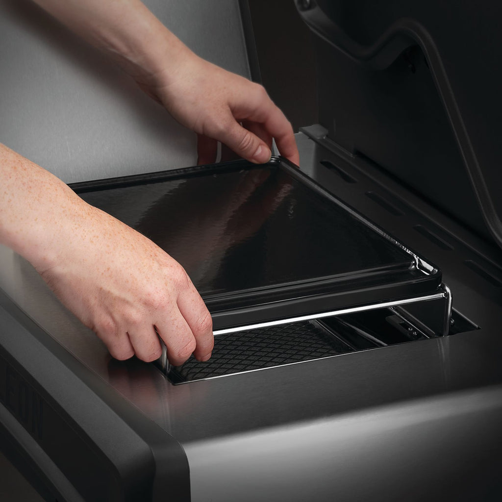 Den plasseres direkte over den lille SIZZLE ZONE™-brenneren, og det medfølgende stativet sikrer korrekt avstand til varmekilden for optimal varmefordeling og kontroll. Et perfekt tilbehør for deg som vil få enda mer ut av grillen, året rundt.