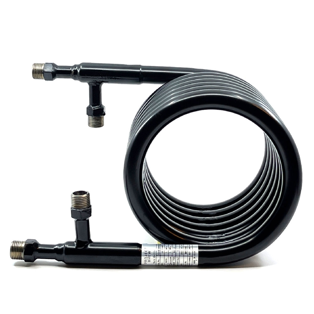 A compact, but very efficient and flexible counterflow chiller in high quality made of copper, which conducts heat significantly better than stainless steel. The cooler is perfect for both small and large batches (20-200 litres), and cools the wort at the same time as you pump it over to the fermentation tank.