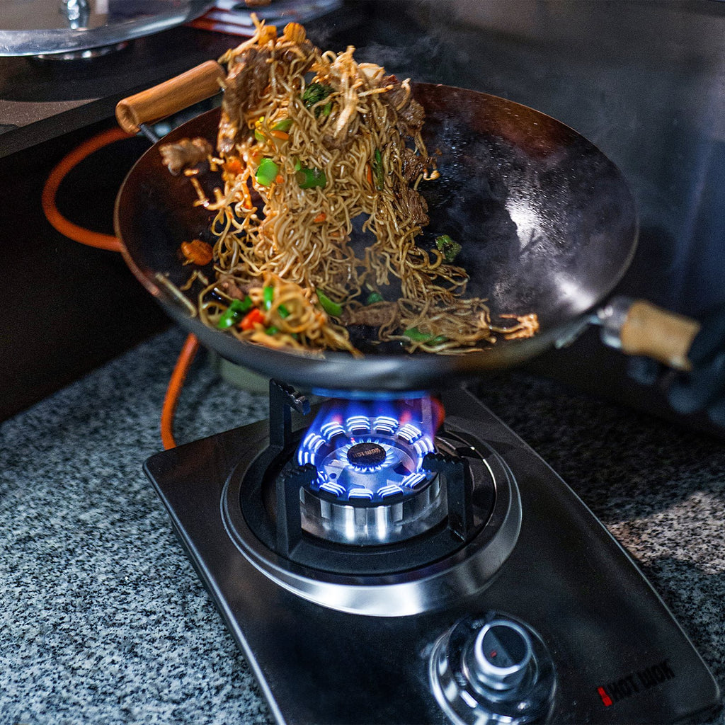 Med sin 4,5 kW effekt leverer den rikelig med varme for ekte wok-steking, samtidig som den elektroniske piezo-tenningen gjør opptenningen rask og enkel.