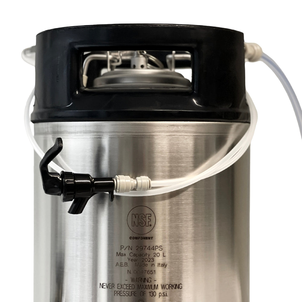 - Fatpakke med 20L corneliusfat fra AEB, Oxyturbo sodastream-regulator, 425g SodaStream kullsyrepatron, Pushfit CO2-slangesett og ølslangesett med skumdemp