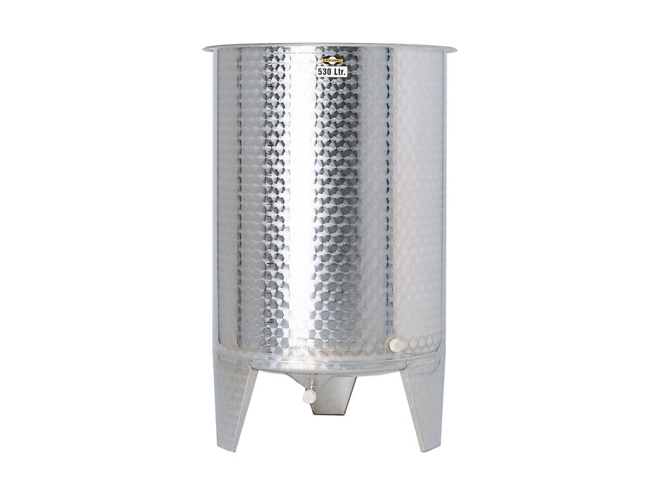 Tanken er produsert i AISI 304 rustfritt stål med høyglanspolert innside og marmoreret utside for enkel rengjøring og lang levetid. Den har buet bunn for effektiv tapping, tydelig litermarkering, og står stødig på tre solide ben.