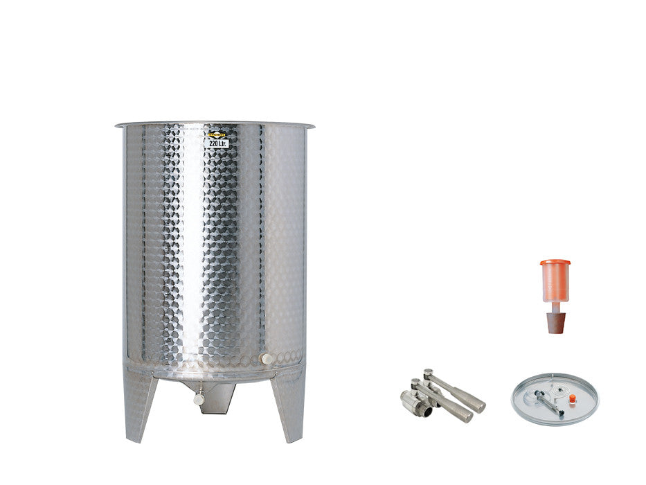 Speidel FO1 220L gjæringstank med flytende lokk er en profesjonell løsning for deg som lager vin, cider eller annen drikke der oksygenkontroll er avgjørende for kvaliteten. Tanken har variabel kapasitet og leveres komplett med alt du trenger for å komme i gang – inkludert flytende lokk med pumpe og manometer, kuleventiler i rustfritt stål, gjærlås og propp.