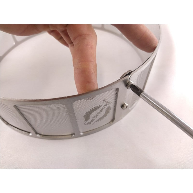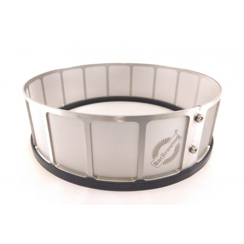 Trub Stopper er en 2 mm tykk konstruksjon av 304 rustfritt stål, børstet og passivisert. Filteret er produsert av mikroperforert platemetall, ikke netting (mesh), og vil ikke slites i kantene. Leveres med næringsmiddelgodkjent silikonring.