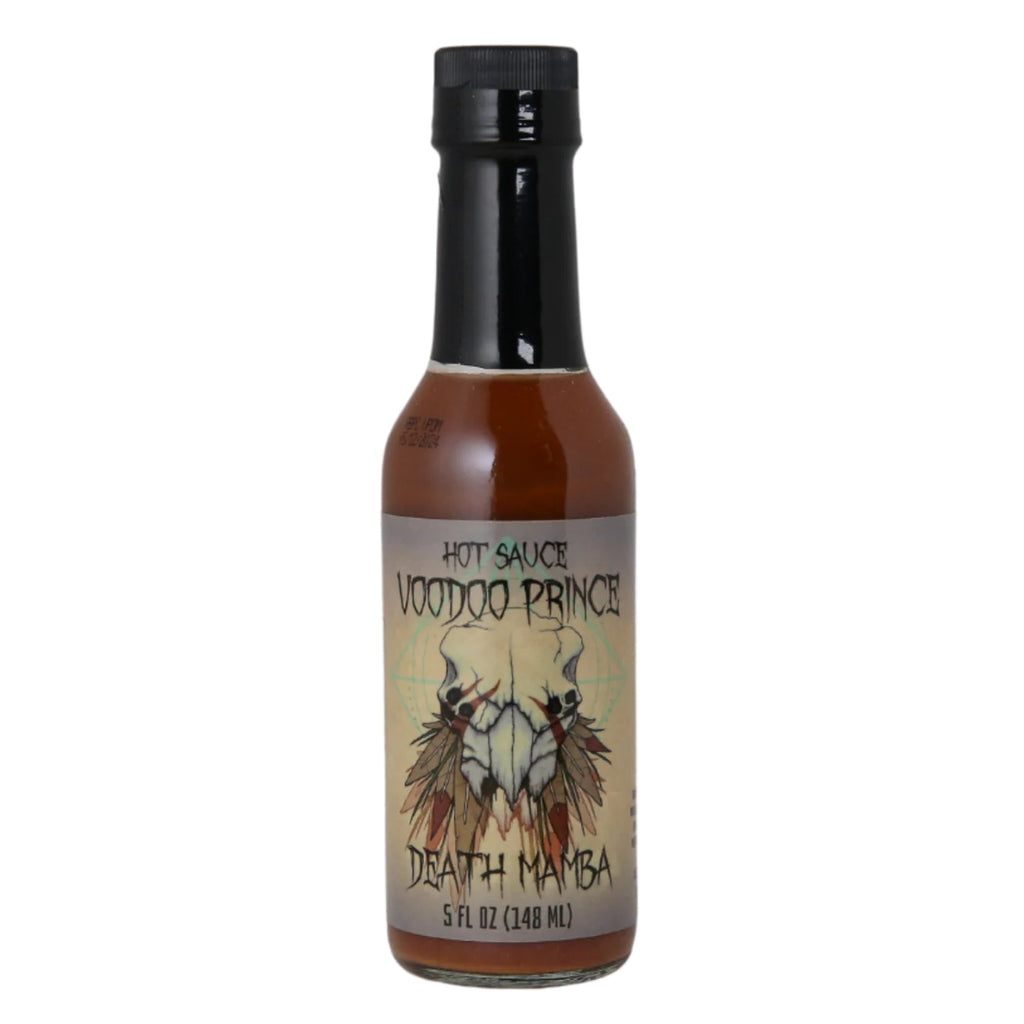 Voodoo Prince Death Mamba er en mørk og djevelsk blanding av intense krydder og den nådeløse ghost pepperen (Bhut Jolokia). Denne sausen er ikke for sarte ganer – den er skapt for deg som søker det ekstreme. Vi anbefaler å smøre den godt utover burgere og ribs for en smaksopplevelse du sent vil glemme.