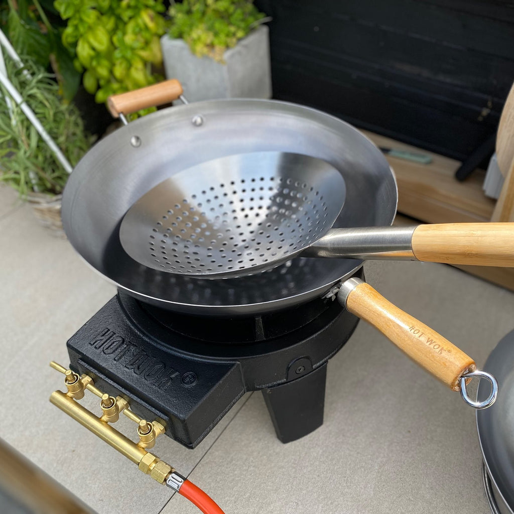 Når du lager ekte wokmat, teller detaljene, og da er HOT WOK Wok Hullskje et uunnværlig verktøy. Den er designet for å gjøre det enkelt å løfte, sile og drenere ingredienser rett fra olje, saus eller kraft.
