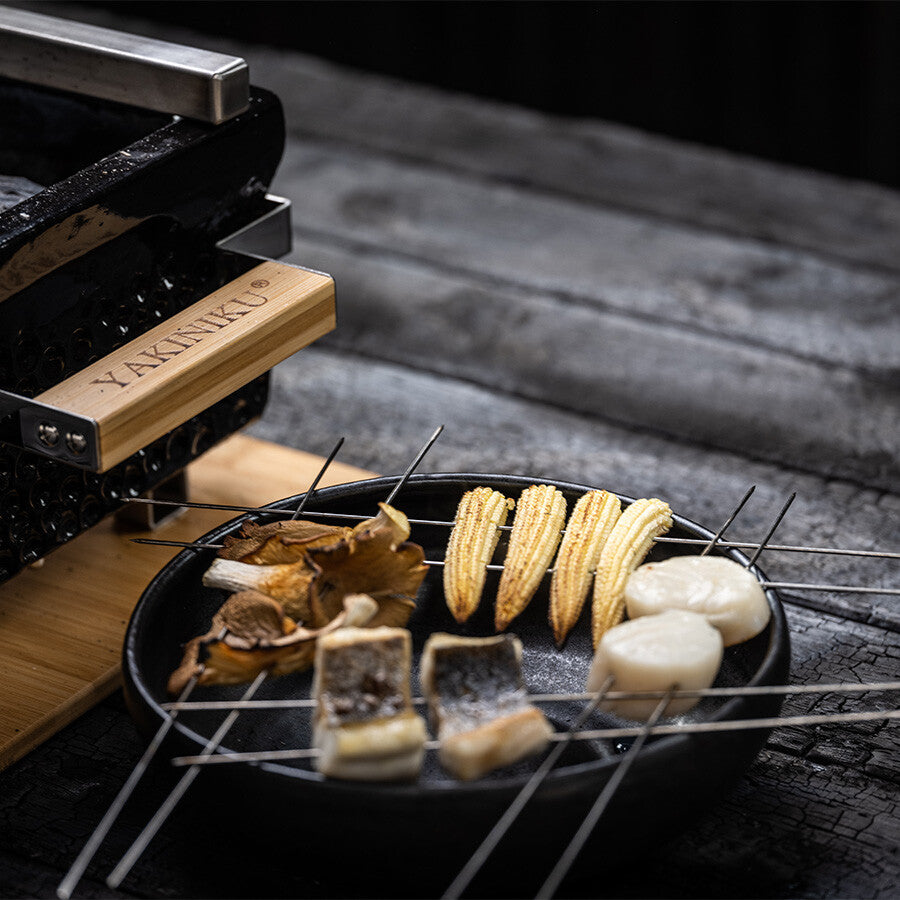 YAKINIKU BBQ spyd er laget i rustfritt stål og har en ekstra tynn utforming som gjør det enkelt å tre fisk, kjøtt og grønnsaker skånsomt. Dette sørger for at råvarene holder formen og gir et jevnere grillresultat.